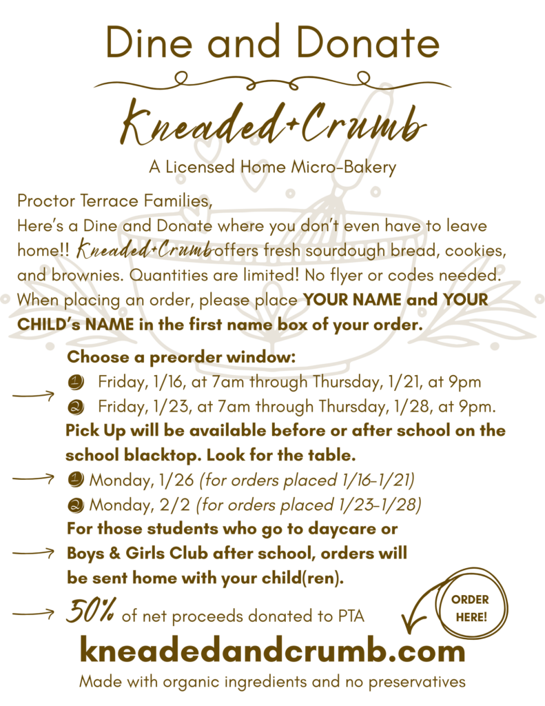 We are excited to offer childcare now– Please RSVP to ptaboard@proctorterracepta.org if you’d like to bring your child.
