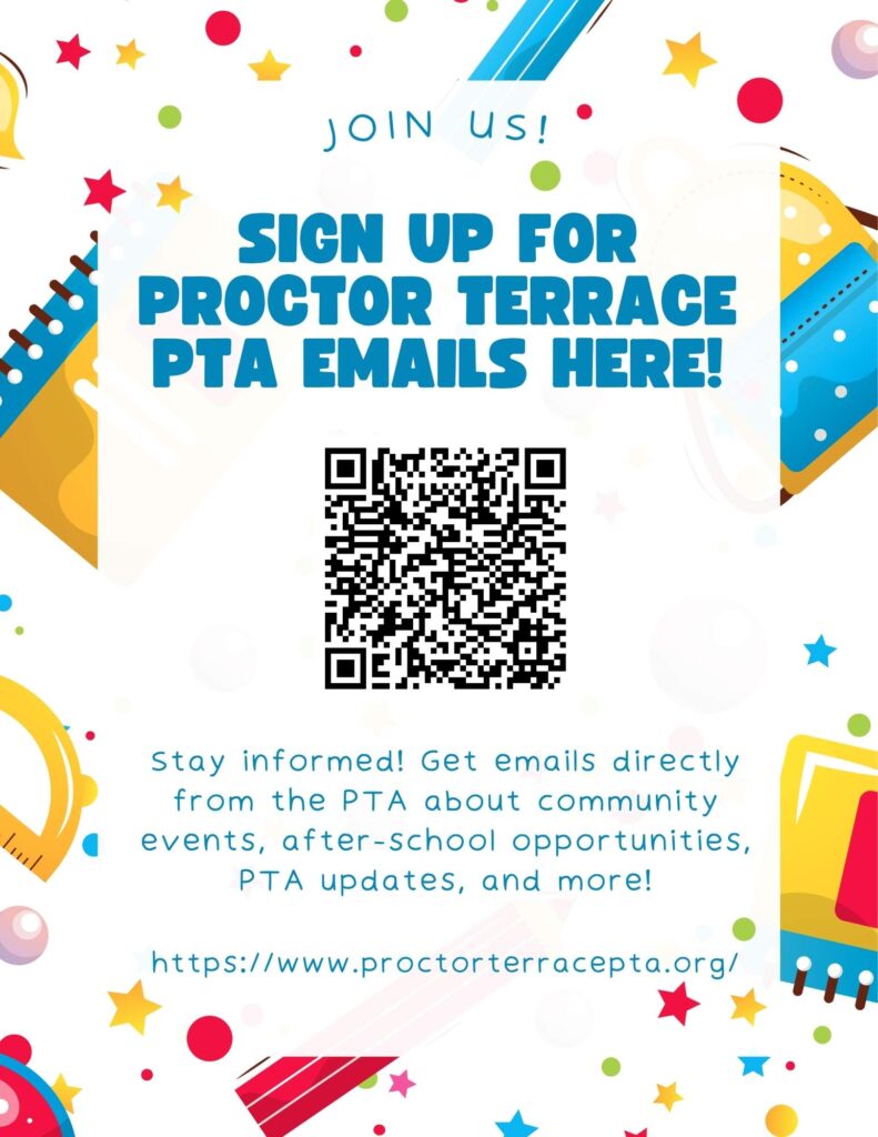 We are excited to offer childcare now– Please RSVP to ptaboard@proctorterracepta.org if you’d like to bring your child.